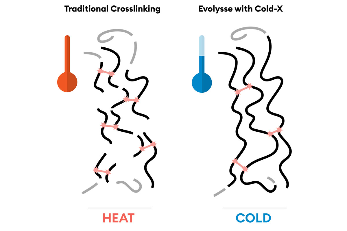 Unlike fillers that use heat during production, Evolysse uses a cold-temperature process. This technique maintains the molecular integrity of the hyaluronic acid, allowing the filler to behave more like natural tissue, resulting in improved comfort and appearance.